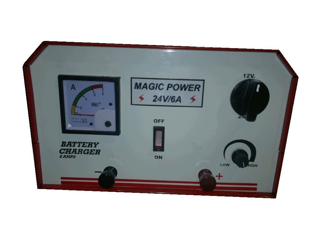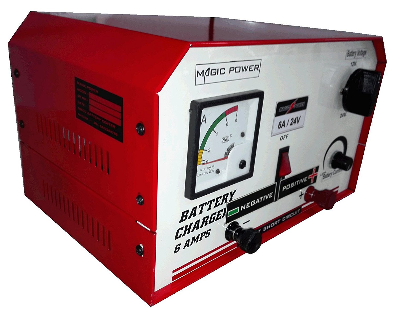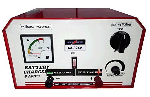 This Battery Charger Supports all types of Automoblie batteries and Invertor Batteries. Its capacity is to charge two batteries at a time in series connection. Other feature include selector switch between 12Volts and 24Volts, Current controller to adjust the current as per the battery. This Charger Supports all Brand battries from Exide, Amron, Bosch, Exide Invva,etc . It is a Heavy Duty Charger from the Brand Magic Power all our chargers are of best quality and tested. The MAGIC POWER 24V 6A battery CHARGER is a high quality charger designed to provide excellent performance, durability and long life. This charger meets or exceeds the original manufacturers specifications. Compatible Battery includes: 12V 35Ah, 12V 40Ah,12V 50Ah,12V 60Ah, 12V 80Ah, 12V 120Ah Lead Acid and Alkaline batteries Our chargers are new and always fresh stock. Buy with Confidence