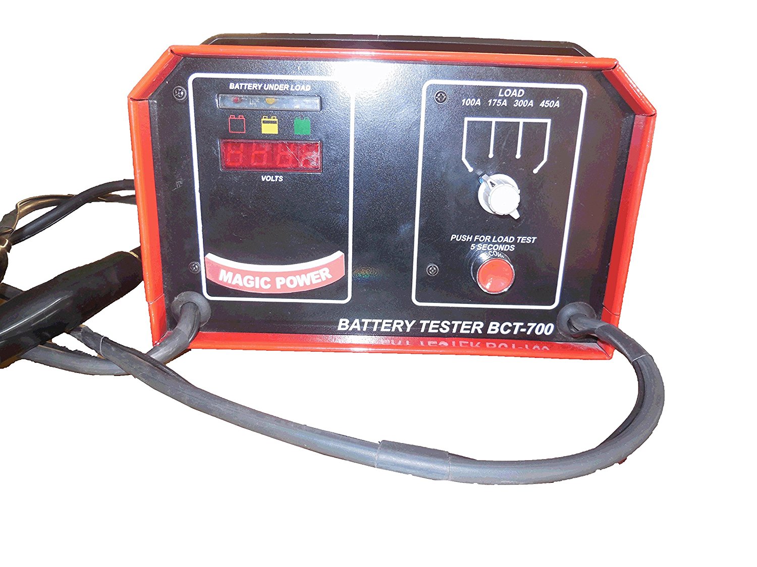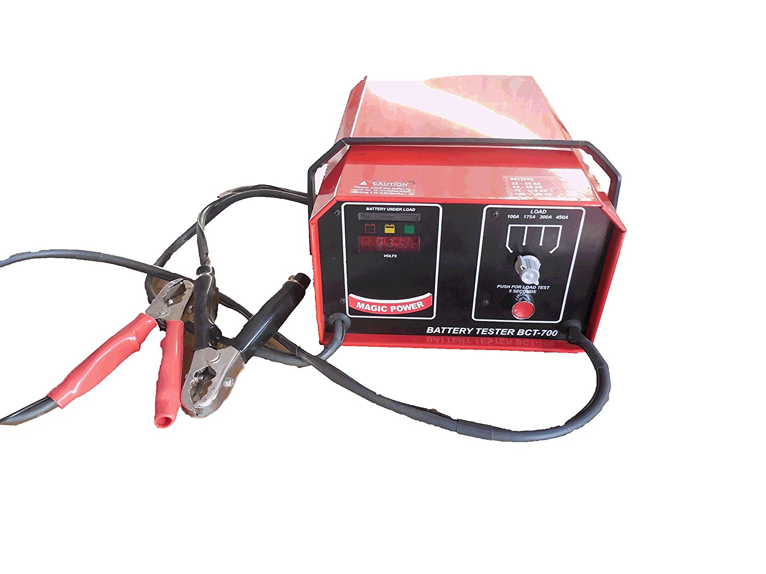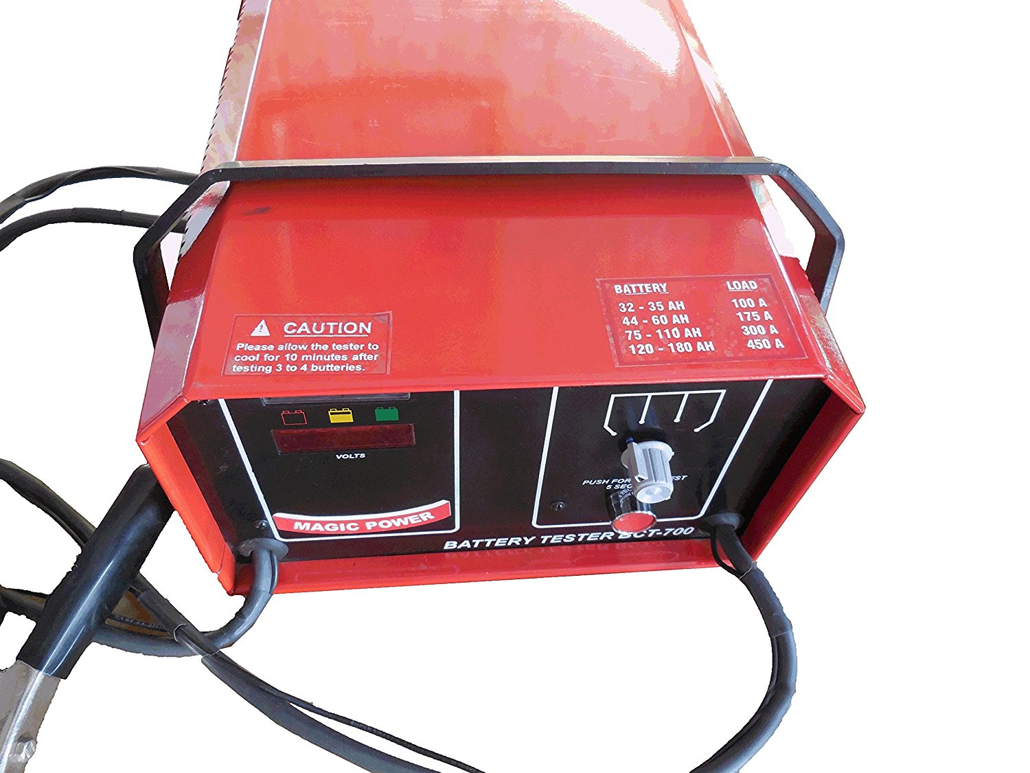 This Load Tester is designed to Test 4-wheeler batteries.It is equipped with LEd indicator for displaying the condition of the battery, the Load tester does not require any external power supply. The load tester comes from the brand MAGIC POWER and is manufactured using best quality material. This load tester is able to test all types of 4- wheeler batteries rated at 12V 32Ah, 12V 35Ah, 12V 60Ah, 12V 100Ah, 12V 120Ah, 12V 150Ah, 12V 180Ah, 12V 220Ah. It has got a selector switch to select the respective battery it supports alkaline and lead acid SLA battries